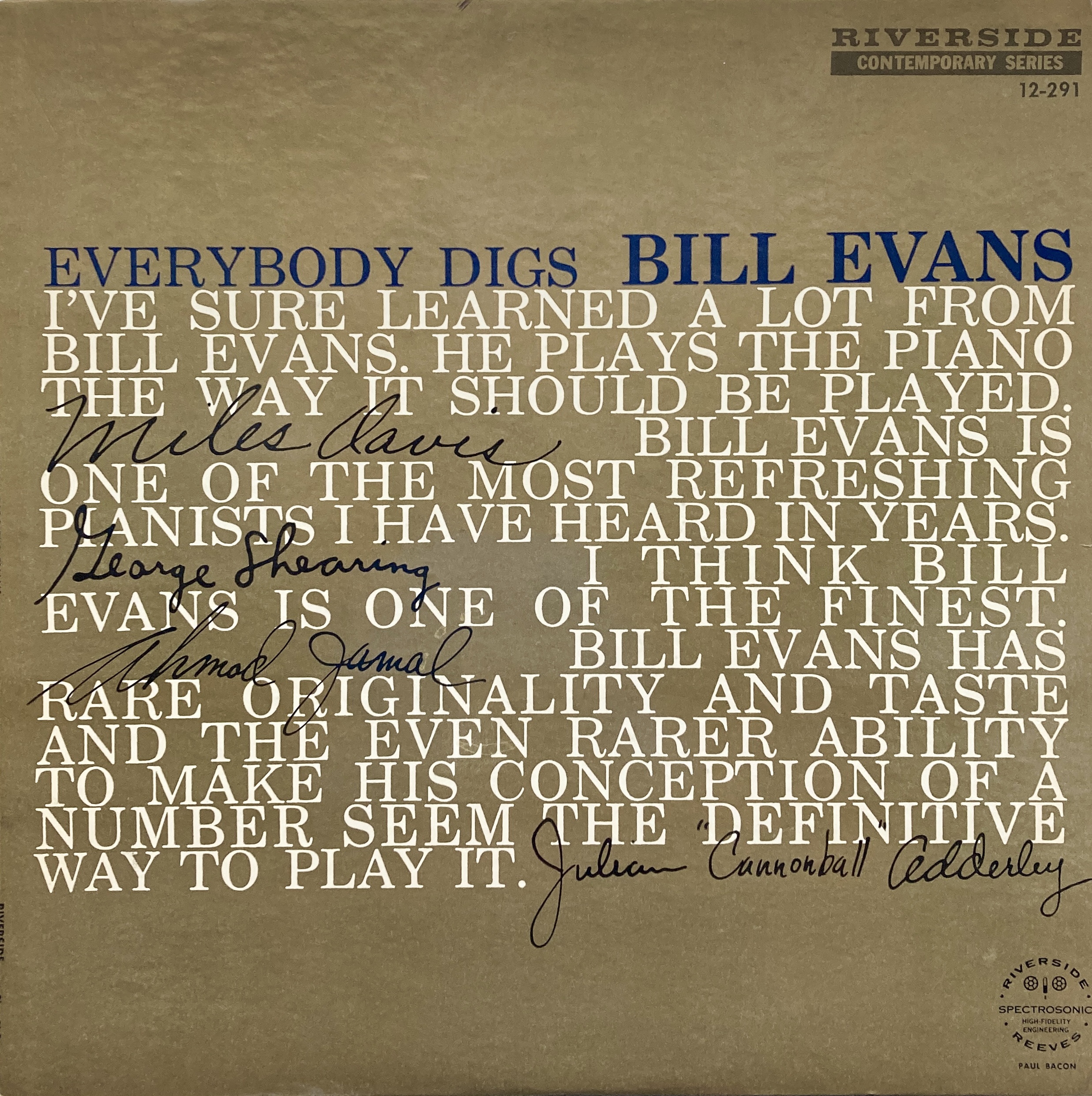 ◆BILL EVANS / EVERYBODY DIGS BILL EVANS (RLP12291)