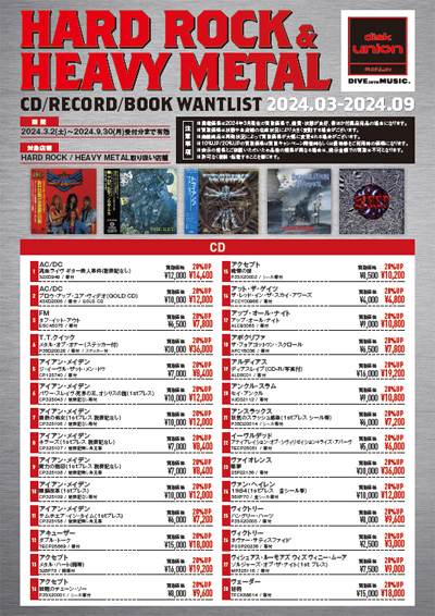 2024年06月25日 高価買取リスト HEAVY METAL / HARD ROCK (USED / 中古) ■HARD ROCK / HEAVY METAL CD/紙ジャケット/レコード/BOOK wantlist 2024.03-2024.09